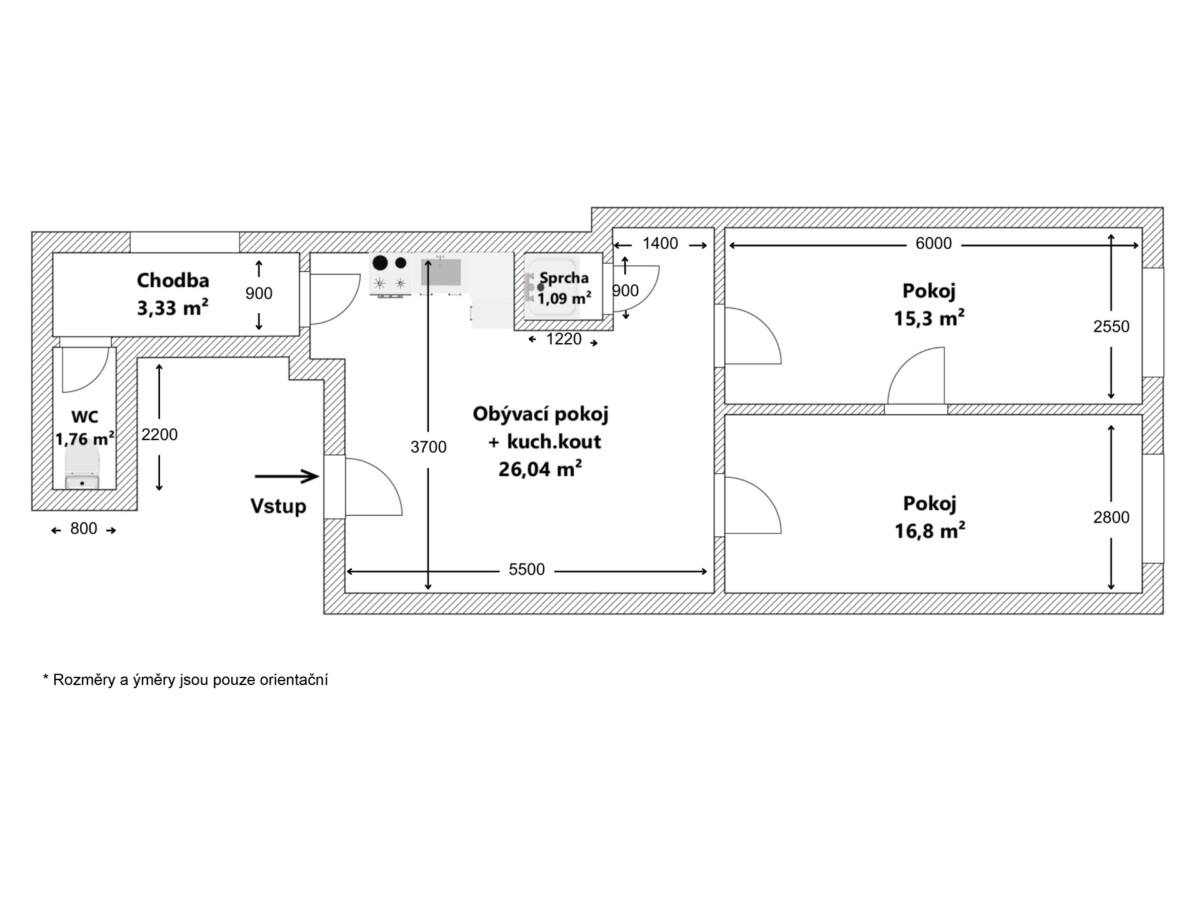 Dispozičně se jedná o byt 2+1 o velikosti 52 m2. Pokoje jsou neprůchozí. Vhodné i jako spolubydlení.